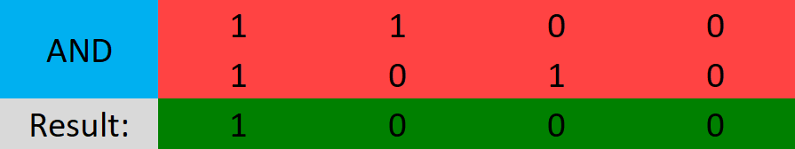 AND checks if both bits are 1 and if they are the result is 1, if not the result is 0.